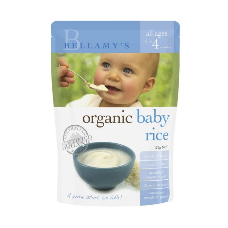 Bellamy’s Organic Baby Rice is a dry cereal of soft rice flakes, that can be quickly and easily prepared with water or baby’s usual milk. Bellamy’s Organic baby foods are certified organic, and free of synthetic additives and preservatives.