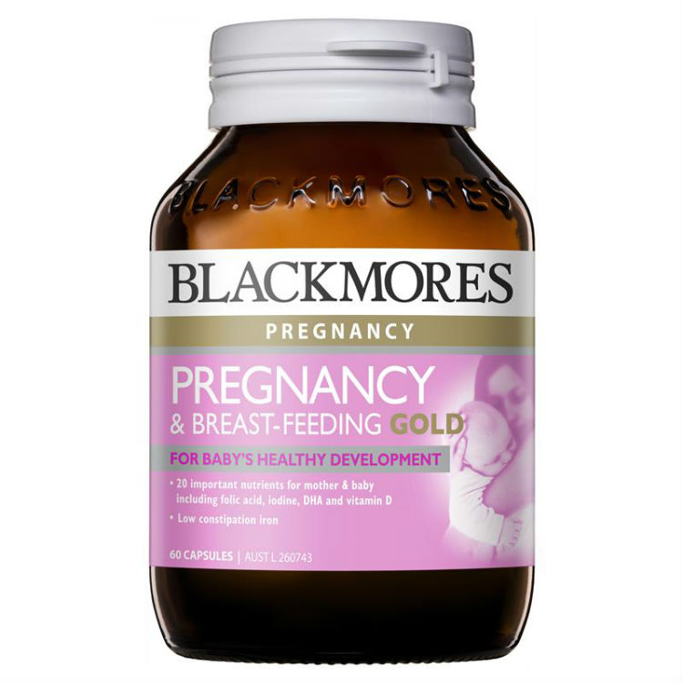 Blackmores Pregnancy & Breast-Feeding Gold provides an ideal daily dose of 20 important nutrients for mother and baby including folic acid, iodine, DHA, vitamin B3 (nicotinamide) and vitamin D3. With a low-constipation iron.