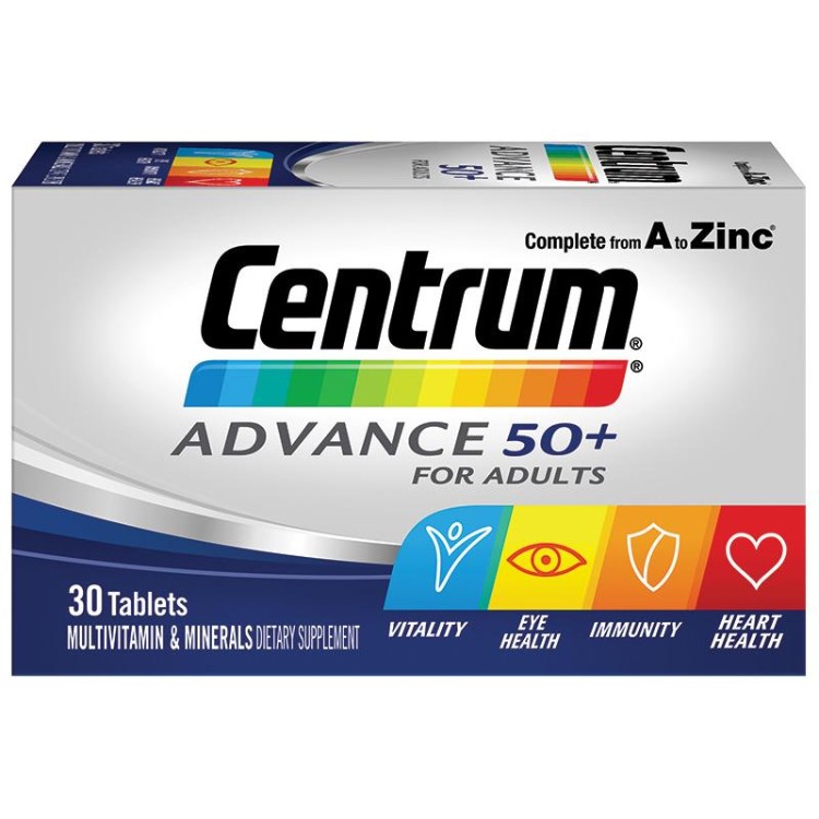 Centrum Advance 50+ is designed to give your body the right nutrients at the right levels as you get older to help fill nutritional gaps in your diet. With the added benefit of Lutein for healthy eyes, and Lycopene for a healthy heart, Centrum Advance 50+ is complete from A to Zinc.