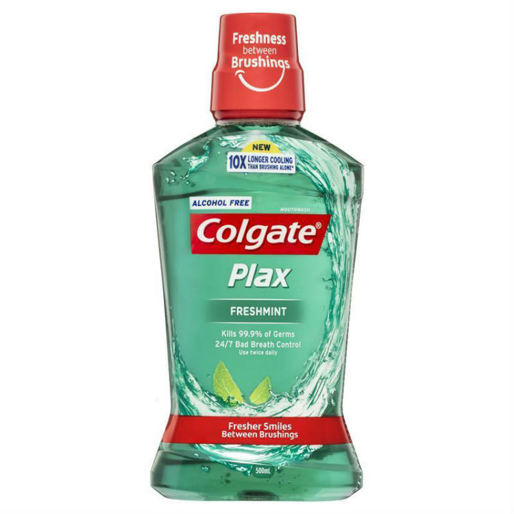 Colgate Plax Mouthwash Freshmint kills 99.9% of germs.
