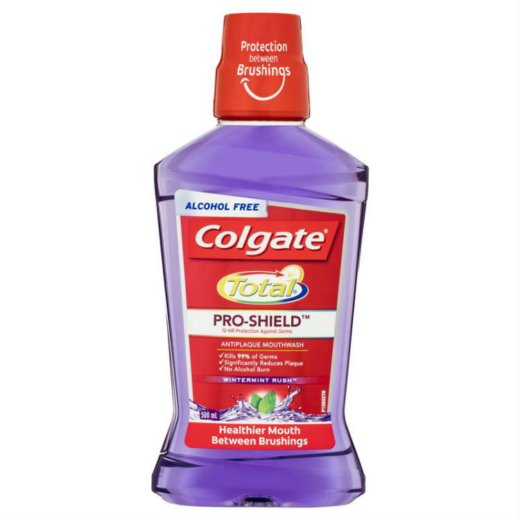 Colgate Total Pro-Shield Mouthwash kills 99% of germs, significantly reduces plaque and protects even after eating and drinking.