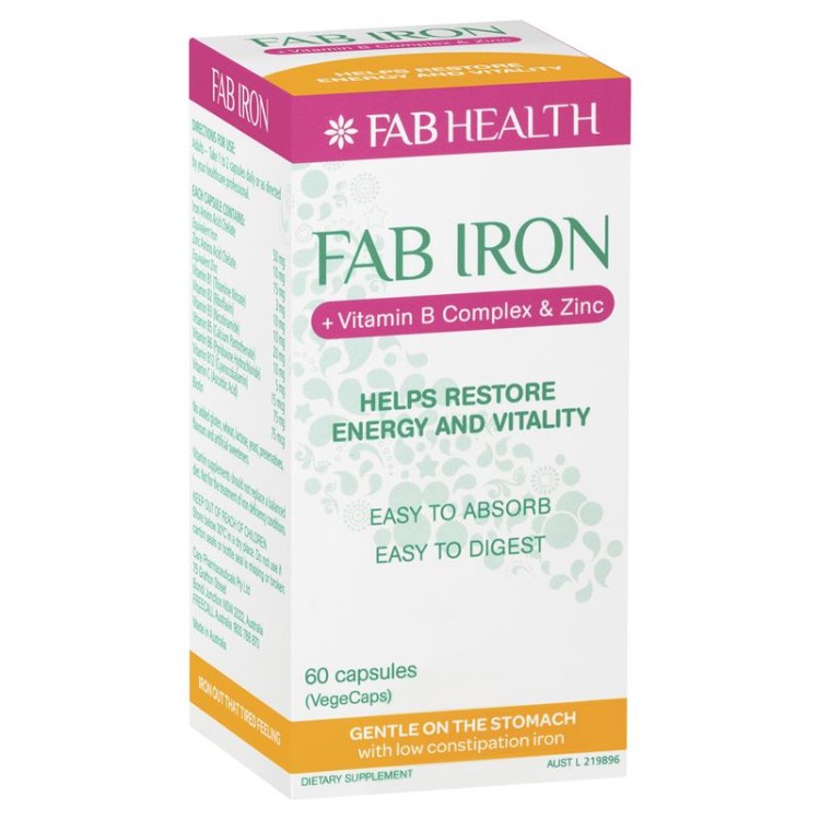 FAB IRON is a combination of easy to absorb iron, energy boosting B group vitamins and zinc to help restore energy and support your immune system.
