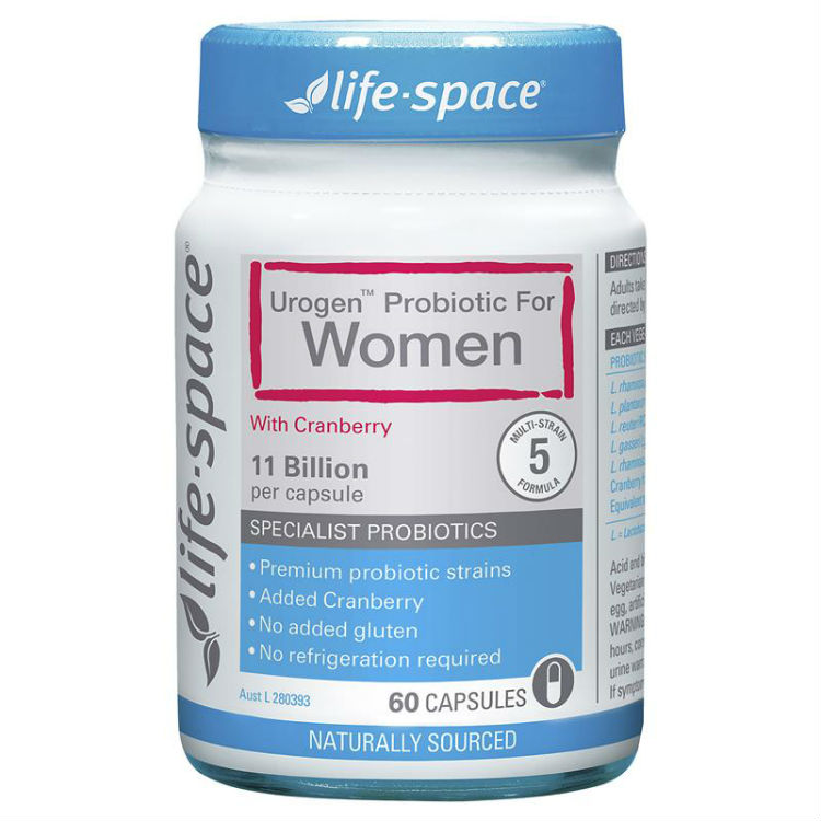 Life-Space Urogen Probiotic for Women Capsules with cranberry has 5 multi-strain formula.