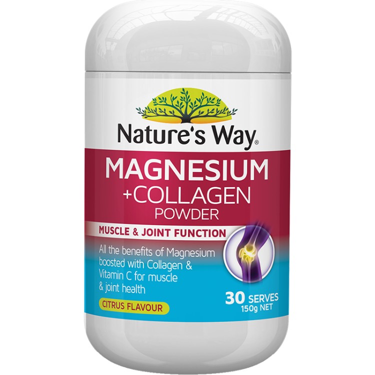 Nature’s Way Magnesium + Collagen Powder provides natural energy & performance boost with the combination of Magnesium & Collagen. This natural citrus flavoured powder drink is simple to prepare with water to get your daily dose of magnesium and vitamin C with a boost of collagen in one go for muscle & joint health in people with active lifestyles.