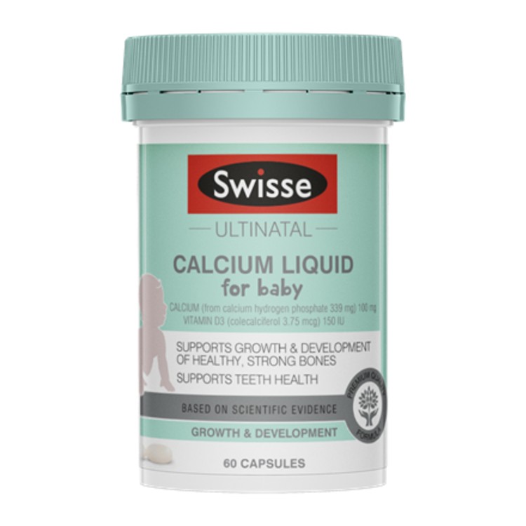 Swisse Ultinatal Calcium Liquid for Baby is a premium quality formula to help support healthy, strong bones and teeth, and the absorption of calcium.
